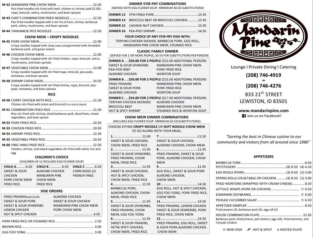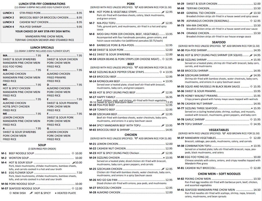 Mandarin Pine Restaurant Menu